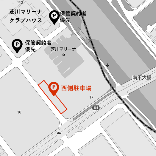 芝川マリーナクラブハウス前の駐車場は、保管契約者様優先の駐車場となっております。