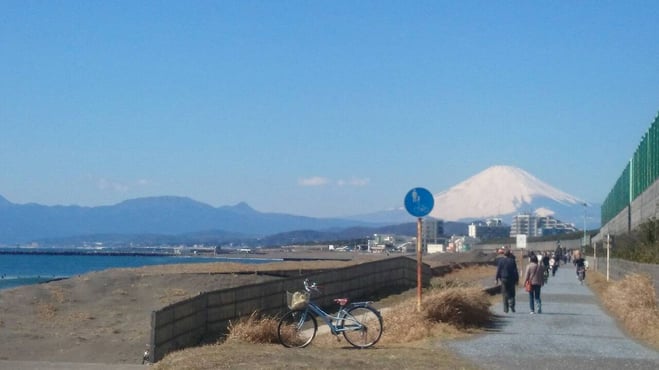 茅ヶ崎って、こんなに近くに富士山見えるんですね~。